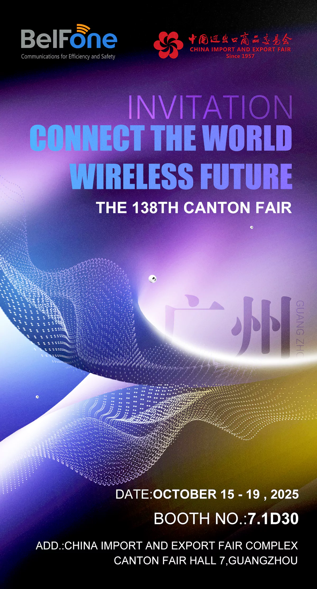 Ganz gleich, ob Sie die Kommunikationstools Ihres Teams aufrüsten, neue Technologien erkunden oder Ihr Branchennetzwerk erweitern möchten, diese Veranstaltung ist auf Sie zugeschnitten. Wir freuen uns auf Sie!Hinzufügen: Canton Fair Hall 7, Guangzhou
